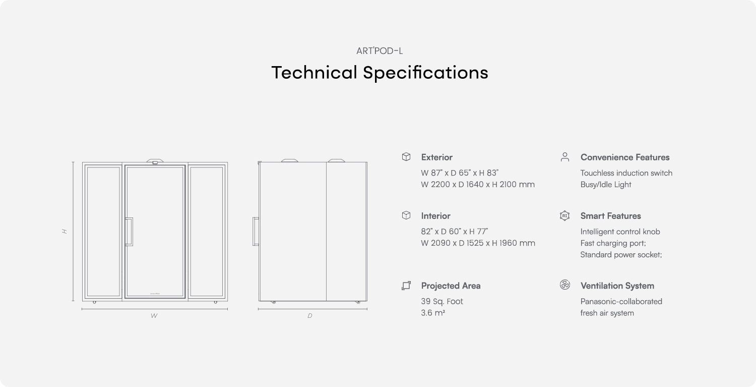 ART+ Lは、最大6名まで快適に利用できるゆとりある大型ブースです。