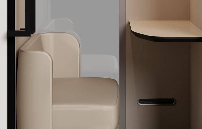 限られたスペースでも、高い遮音性と洗練された空間設計により、快適で効率的な作業環境を実現します。