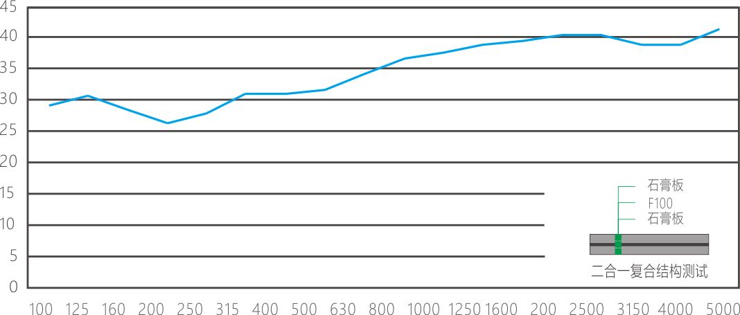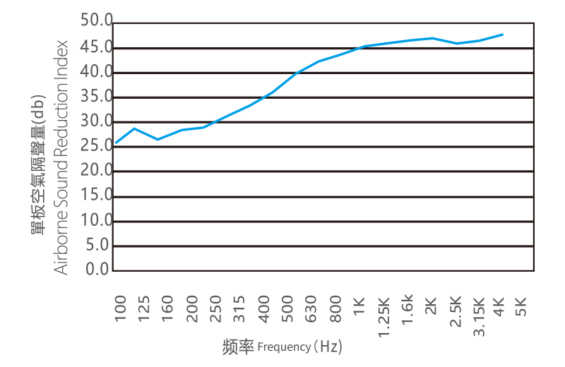 特徴異なる密度を持つ無機不燃高強度の正負両面板を使用し、サンドイッチ構造で高圧複合成形を行うことにより、ダンピング拘束構造を形成しています。これにより、原材料の共振周波数を変化させ、優れた音響透過損失性能を発揮し、従来素材に比べて空気伝播音遮断性能と構造遮音性能を大幅に向上させています。