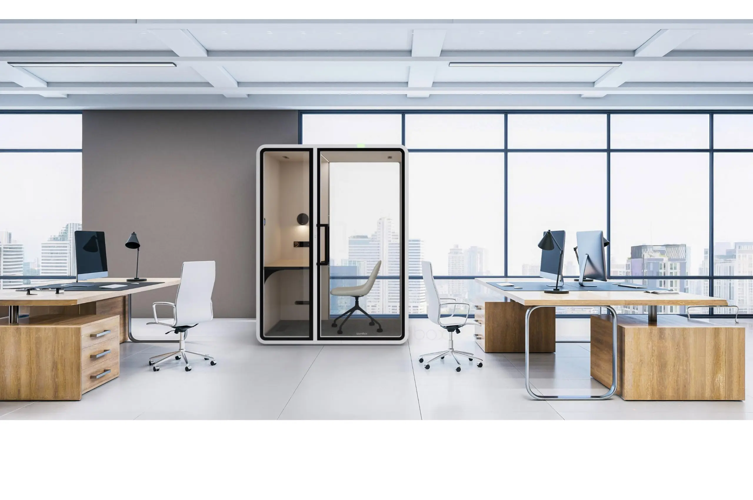 音響工学に基づいた独自の設計により、最大31.2dBの優れた遮音性能を実現 。扉を閉めた瞬間、オフィスの雑音から解放される究極のプライベート空間を提供します。
