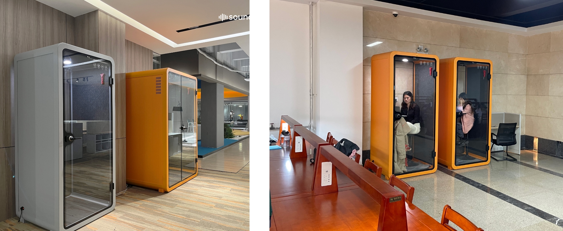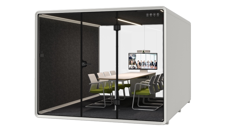 各防音ブースは、機能性とモダンなデザインを両立し、堅牢な構造、快適な換気システム、設置後すぐに使用できる利便性を備えています。