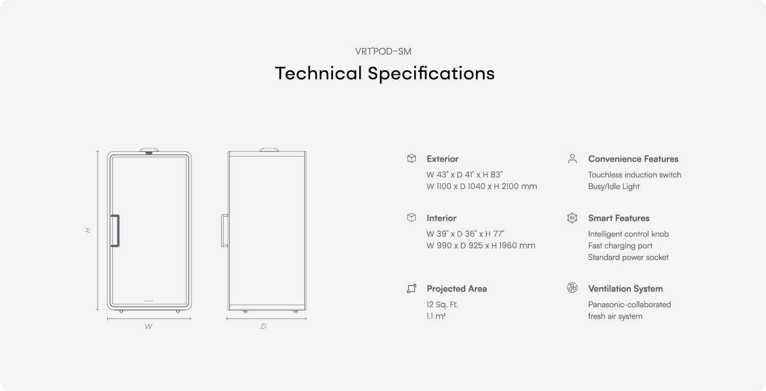VRT+SM は、ビデオ通話や個人作業に適した省スペース型ブースです。