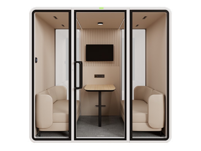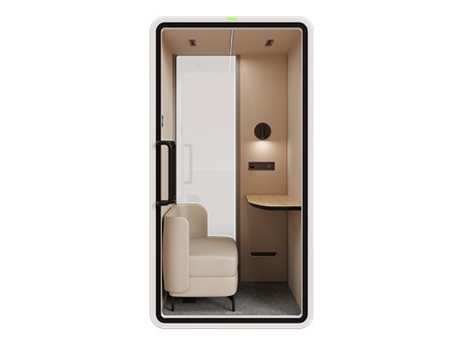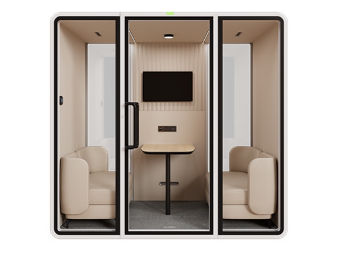 ちょうどいい居場所として、職場のさまざまな場所に自然になじむ会話・集中用ブースです。
