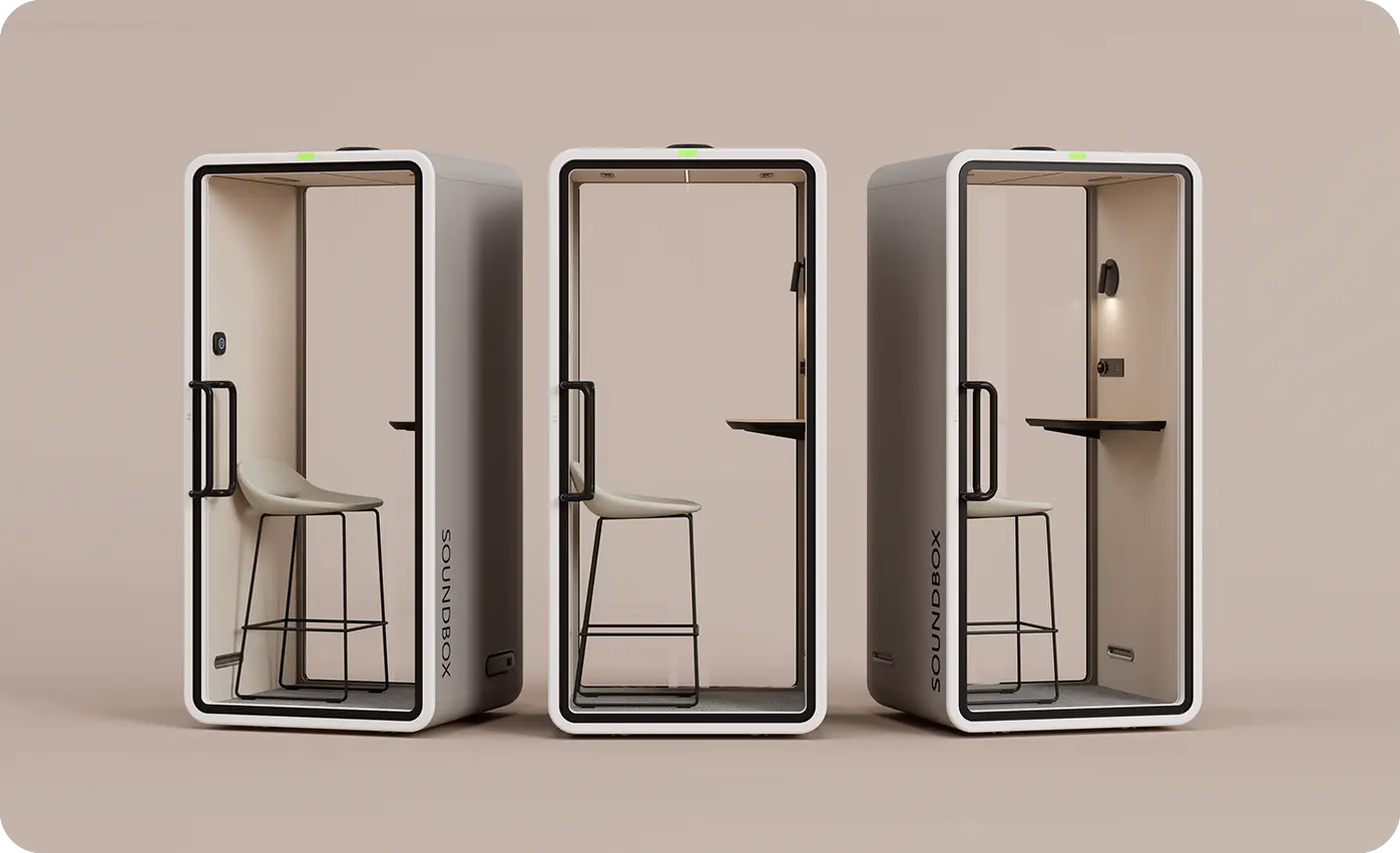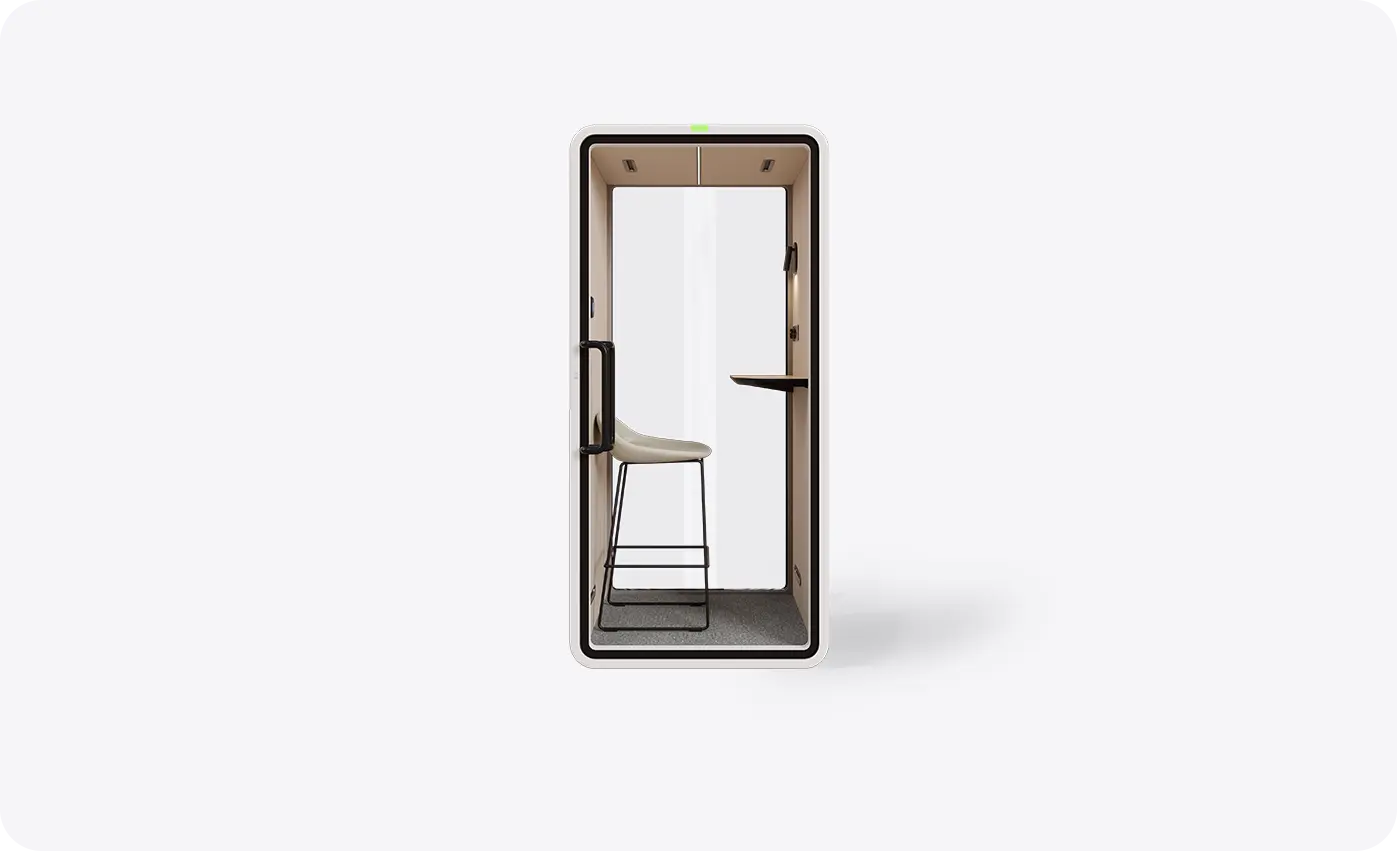 集中力を高め、円滑なコミュニケーションを支えます。オフィス、共用スペース、待合エリアなど、さまざまな設置環境に柔軟に対応し、日常業務の質と効率を高める一人用ブースです。
