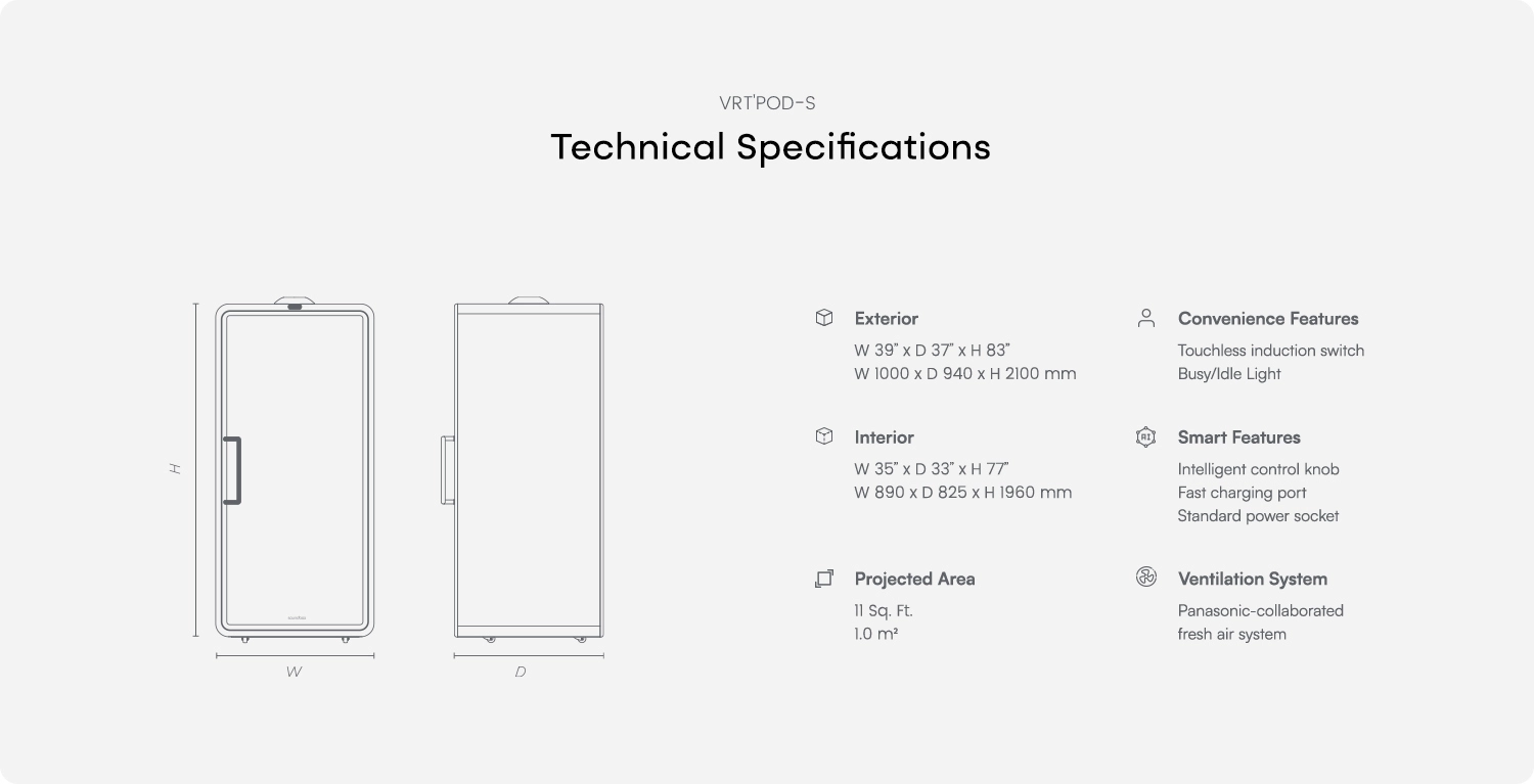 VRT S は、高い防音性能と整えられた空間設計により、周囲の音や視線を効果的に遮り、限られた空間でも落ち着いた作業環境を実現します。